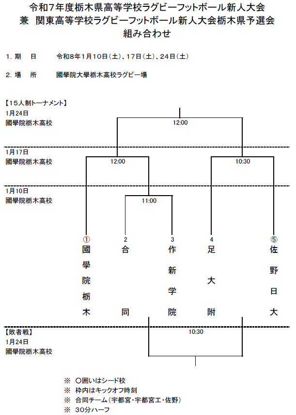 令和7年度栃木県高等学校ラグビーフットボール新人大会 組み合わせ