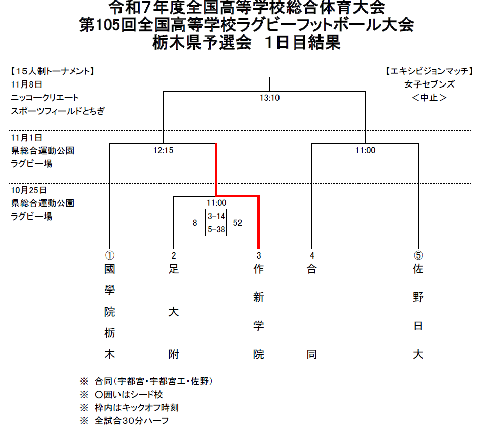 第105回全国高等学校ラグビーフットボール大会栃木県予選会 組み合わせ