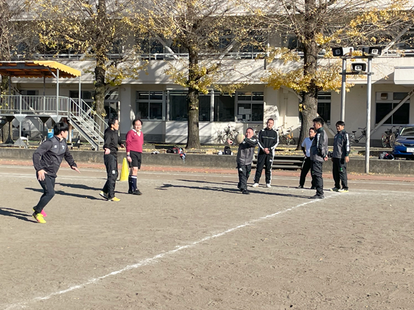 12月7日(日)、作新学院グラウンドにてレフリー講習会を実施しました。当日は天候にも恵まれ、心地よい環境の中で講習を進めることができました。 今回は、B級・C級取得を目指す受講者に分かれ、それぞれのレベルに応じた内容で講習を行いました。実技では、試合を想定したアタックディフェンスの場面を設定し、レフリーとしての動き方や判断を実践的に学びました。講師陣は、受講者一人ひとりに個別で対応し、プレーの見方や笛のタイミングなど、細かな部分まで丁寧に指導。受講者も真剣な姿勢で耳を傾け、積極的に質問するなど、非常に熱心に取り組んでいました。